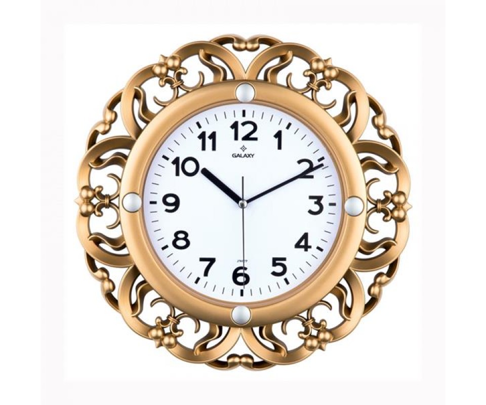 DUVAR SAATİ ALTIN SARISI ÇERÇEVE ÇAP:35CM PVC KADRAN SESSİZ AKAR MAKİNE MİNERAL CAM AKRİLİK BOYALI 2 RENK ABS KASA KADRAN BASKI ALANI: 150MM KADRAN ÖLÇÜSÜ: 240MM