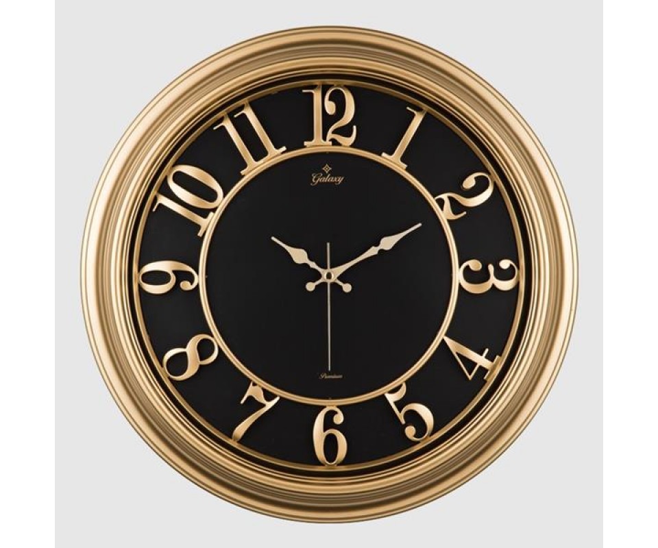 1963-A DUVAR SAATİ ALTIN SARISI ÇERÇEVELİ İÇ SİYAH 46cm KABARTMA RAKAMLI SELEFON KORUMALI AMERİKAN BRİSTOL KADRAN METAL AKREP/YELKOVAN/SANİYE AKAR SANİYELİ MEKANİZMA AKRİLİK BOYA MİNERAL CAM