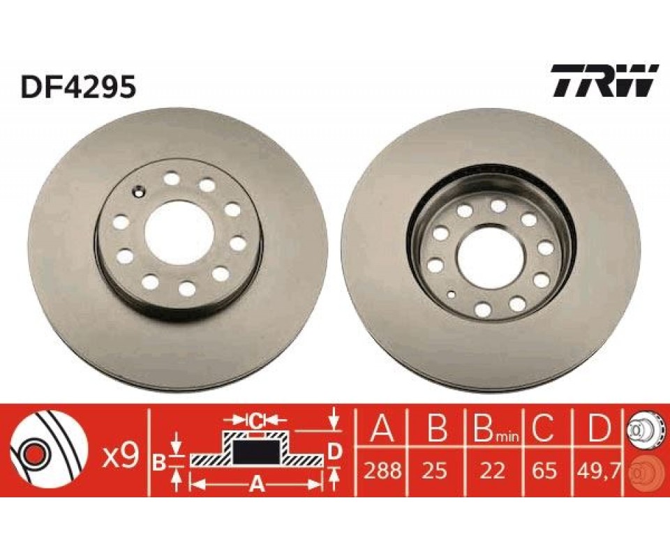 ÖN FREN AYNASI GOLF V-VI-JETTA III-CADDY III-OCTAVIA-ALTEA-A3 03 1.4-1.6.1.9-2.0 288x25x9DLxHAVALI