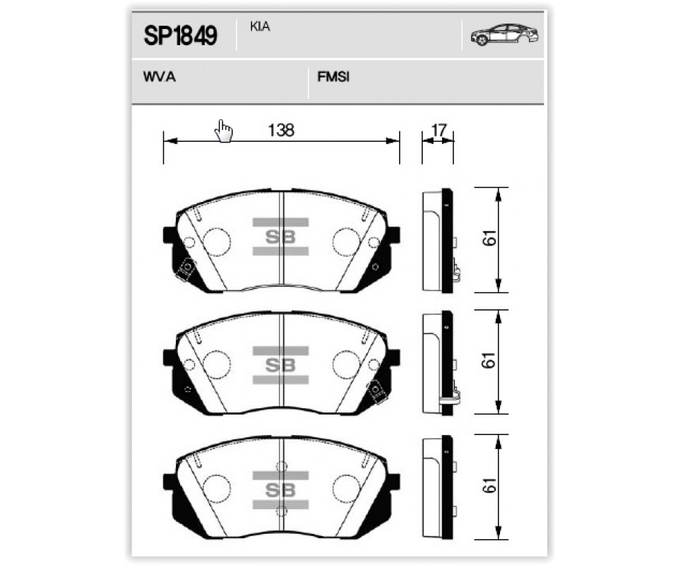 ÖN FREN BALATA HYUNDAI TUCSON 1.6L D4FE CRDİ dizel 136hp 15- 1.6L G4FJ 15- / KIA SPORTAGE 1.6L D4FE CRDİ dizel 136hp 15- / 1.6L G4FJ 15- ÜSTTEN DELİKLİ TİP