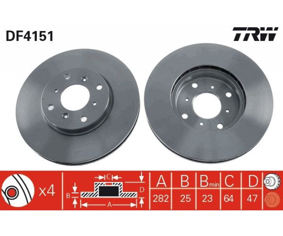 ÖN FREN DİSKİ HAVA KANALLI HONDA ACCORD 1.8L F18B2 CG8 EURO 99-02 282 çap x 4 bijon - Takım disk fiyatıdır