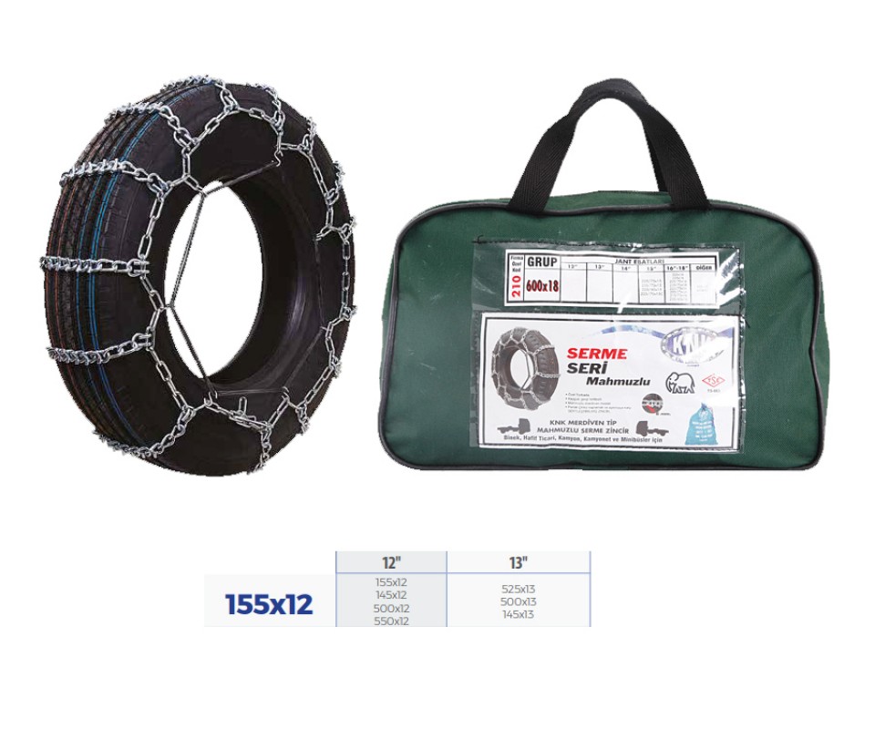 PATİNAJ ZİNCİRİ BİNEK VE HAFİF TİC.ARAÇ SERME 12-13 JANT 155x12 ZİNCİR EBATLARI İÇİN RESİME BAKINIZ
