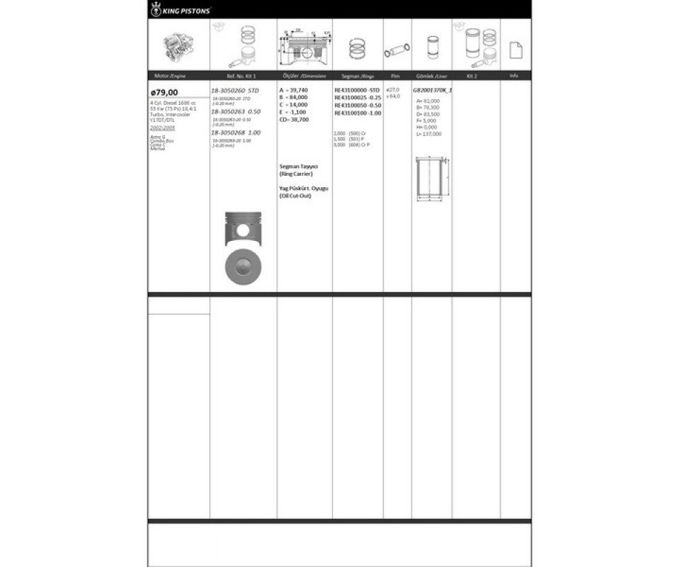 • Ürün Kodu: KINGPISTON 18-3050263