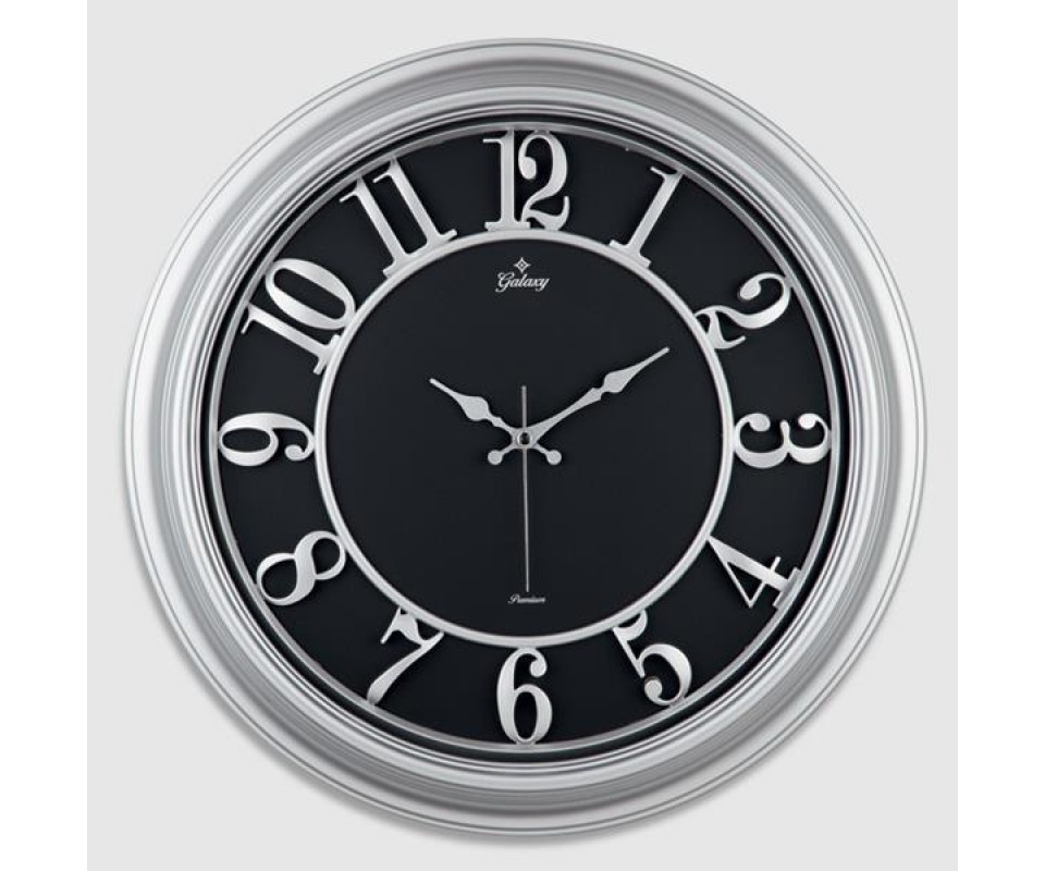 DUVAR SAATİ GRİ ÇERÇEVE İÇİ SİYAH 46CM KABARTMA RAKAMLI SELEFON KORUMALI AMERİKAN BRİSTOL KADRAN METAL AKREP/YELKOVAN/SANİYE AKAR SANİYELİ MEKANİZMA AKRİLİK BOYA ABS HAMMADDE MİNERAL CAM