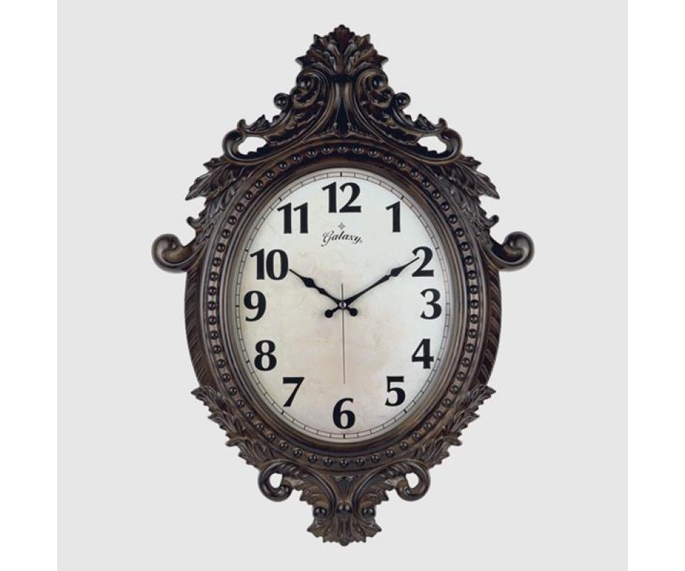 DUVAR SAATİ KAHVERENGİ ÇERÇEVE ÇAP:73cm x 54cm VİNTAGE TAÇLI EKSİTME DEKORATİF AMERİKAN BRİSTOL KADRAN AKAR SANİYELİ MEKANİZMA AKRİLİK BOYA ABS HAMMADDE MİNERAL CAM